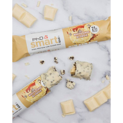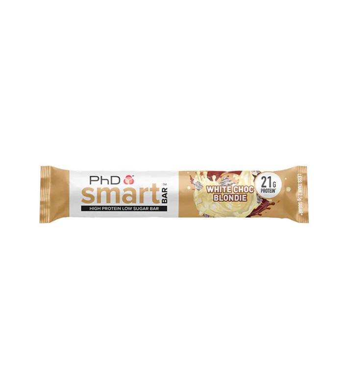 Smart Bar de PHD est une barre de protéines, avec un super goût, triple couche de chocolat, faible en sucres et sans huile de palme qui permet d’avoir sa dose quotidienne de protéines sans excès de sucres. Chaque barre de protéines PhD Smart Bar est dotée d'une délicieuse couche de caramel, de croustillants de cacao, le tout enrobé de délicieux chocolat pour une pause gourmande.
