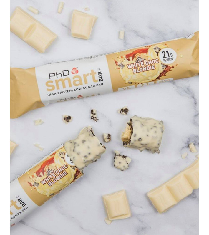 Leur large gamme de saveurs offre aux utilisateurs une source alternative de protéines à base d’ingrédients naturels et sans édulcorants artificiels. Il fallait également pouvoir rester le plus nutritionnellement correct possible. C’est pourquoi PhD a créé Smart Bar, une délicieuse barre de protéines issue de protéines de haute qualité pour en faire un moment de plaisir avec moins de 2 g de sucre quel que soit le parfum. Smart Bar est à base d’un mélange de protéines naturellement riche en BCAA issue des protéines de lait qui aident fortement à la récupération post exercice.