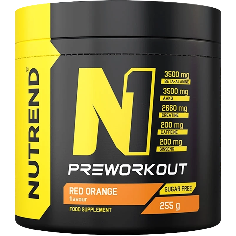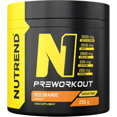 Donnez un boost à vos séances avec le N1 Pre-Workout de Nutrend, présenté ici en format 255 g dans sa saveur « Blue Raspberry ».